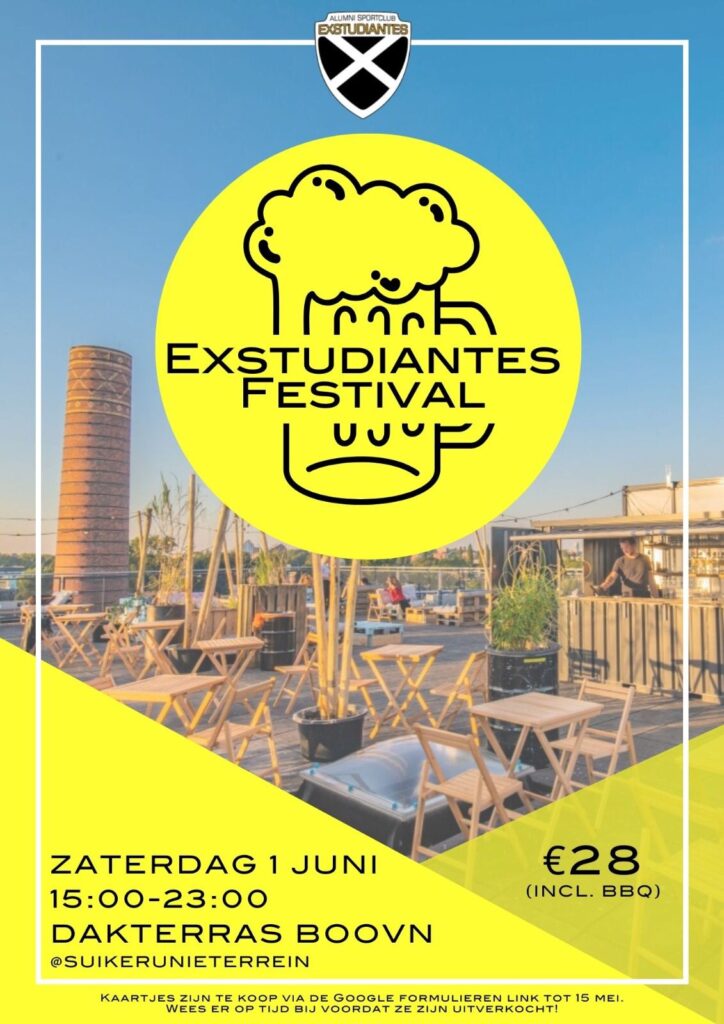 Aanstaande zaterdag is het alweer zover, het Exstudiantes Festival. Wij hebben er veel zin om met zijn allen het seizoen gezellig af te sluiten.Het was namelijk weer een seizoen met veel drukbezochte borrels, waarbij hard gestreden is voor de borrelbokaal.Daarom gaan we tijdens het festival de borrelbokaal uitreiken.