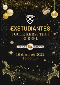 Nu het einde van het jaar en alle feestdagen in zicht komen, is het tijd om met z’n allen nog eens het glas te heffen. Trek die foute kersttrui maar weer uit de kast en proost met ons mee op de laatste Axxie activiteit van 2022! Hopelijk zien we jullie allemaal op 16 december vanaf 20.00u bij de Dogs. Tot dan!